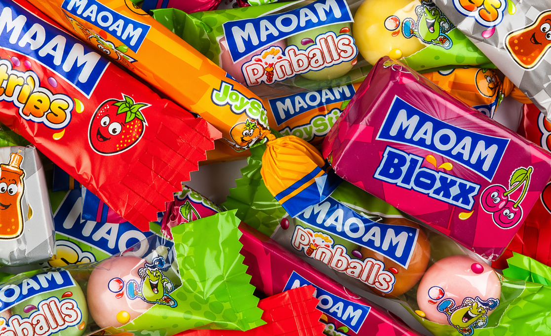 Maoam appartient à Haribo depuis 1986 et la marque est connue pour sa texture moelleuse. Cette texture est généralement obtenue grâce à la gélatine – et, en Europe, il s’agit le plus souvent de gélatine porcine.